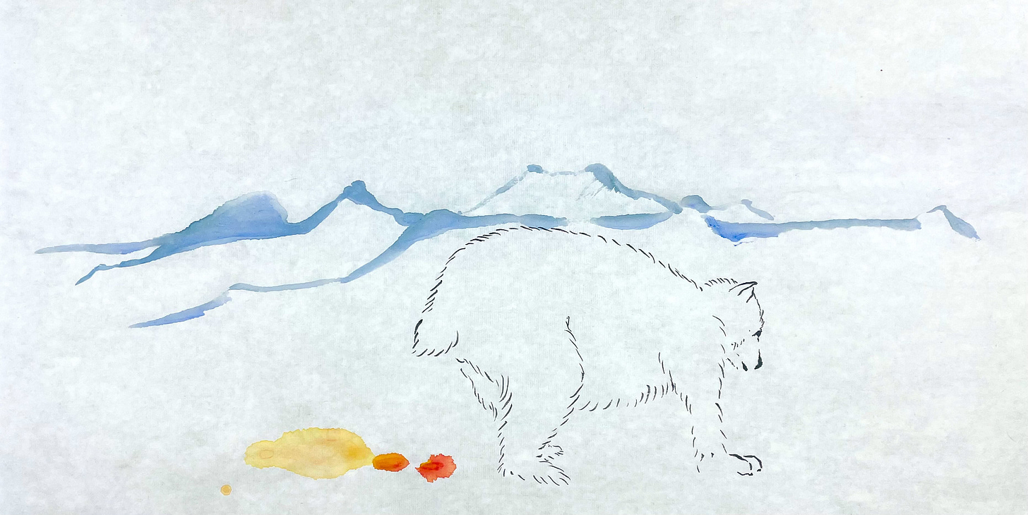 As you read, a white bear leisurely pees, dyeing the snow saffron, and as you read, many gods lie among lianas: eyes of obsidian are watching the generations of leaves, and as you read the sea is turning its dark pages, turning its dark pages. 当你阅读时,一只白熊悠然自得 撒尿,将雪染成 黄红的色彩, 当你阅读时,众多神祇 卧伏在藤蔓之间:黑曜石般的眼睛 注视着一代一代的叶子, 当你阅读时, 大海在翻动它那深沉的页章, 翻动着 它那深沉的页章。